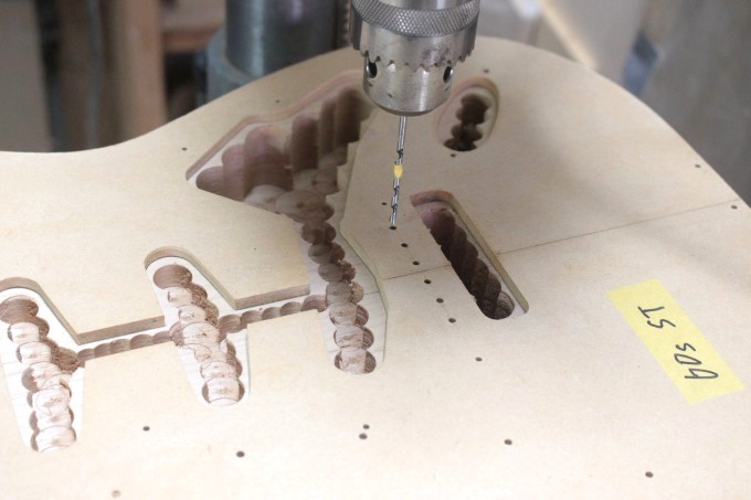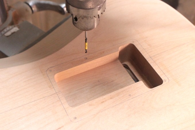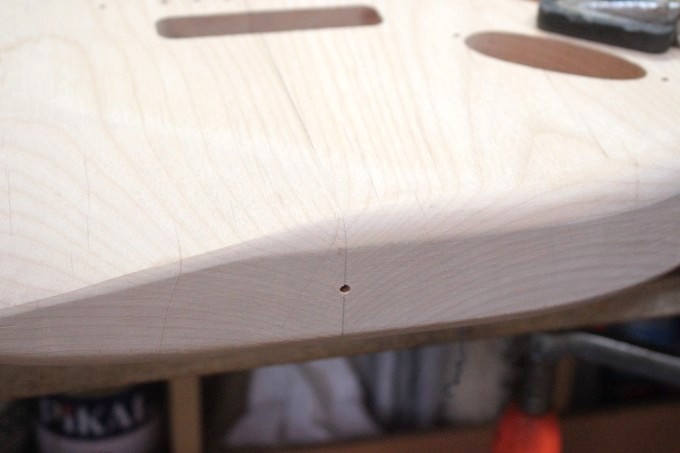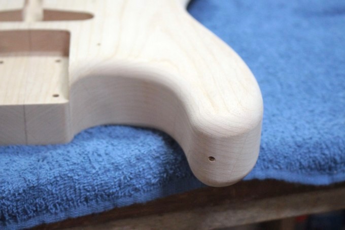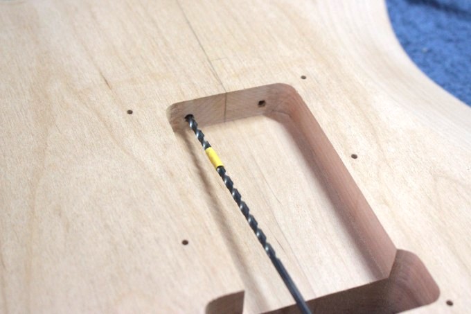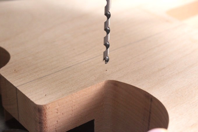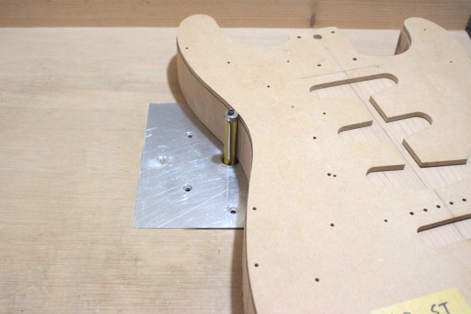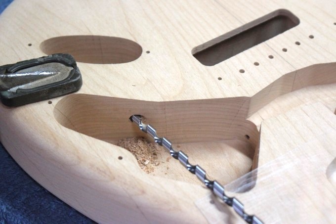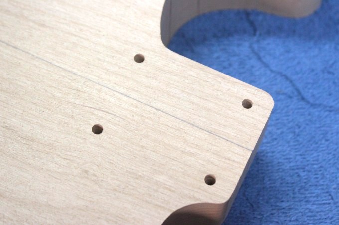 ネックポケットの加工が終わったらネック取付穴をあけます↓